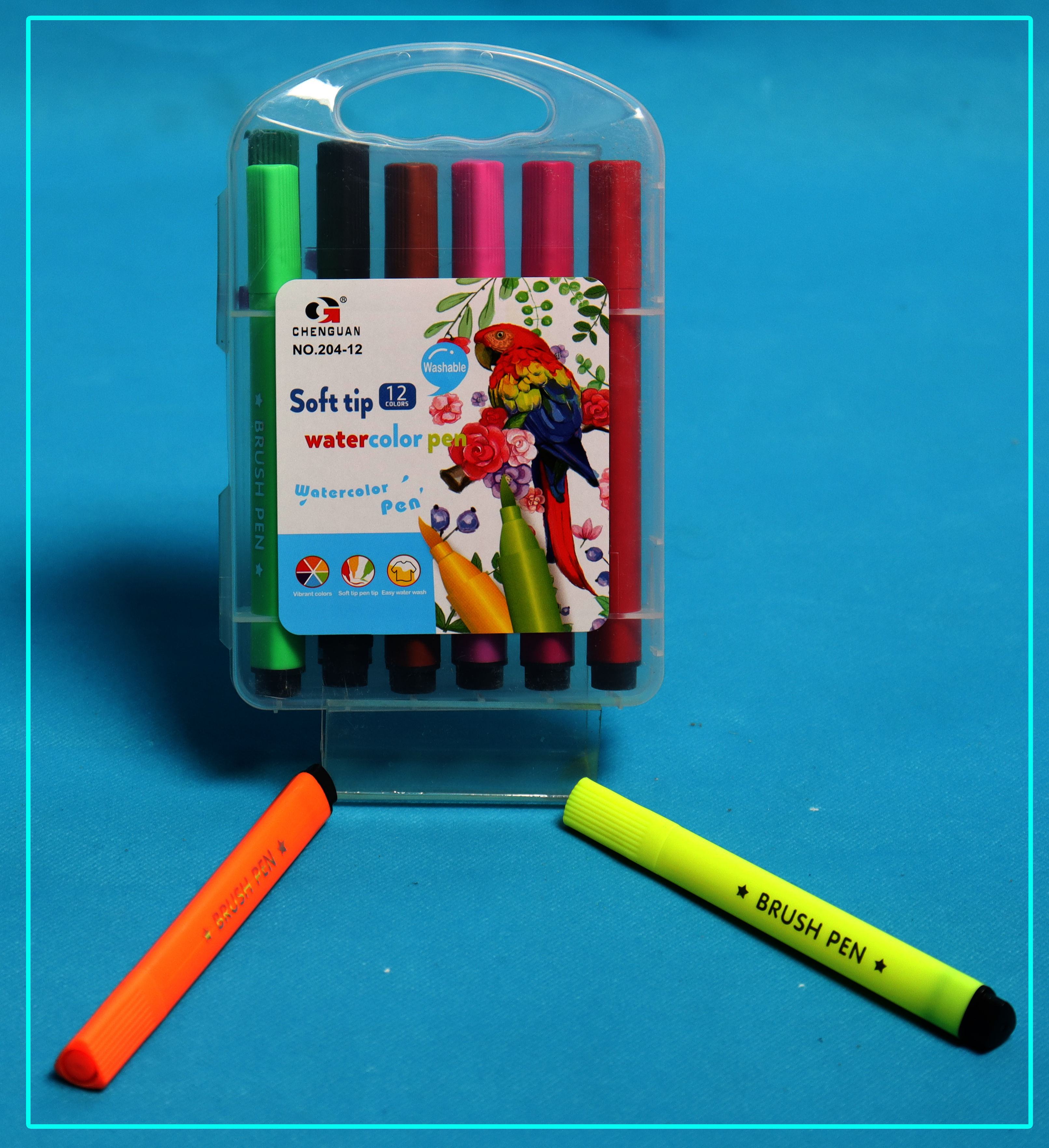 أقلام الماركر المائية ذات الرأس الناعم هي خيار ممتاز للفنانين الصغار الذين يرغبون في استكشاف الرسم بالألوان المائية. تأتي هذه المجموعة من 12 لونًا متنوعًا في علبة محمولة وعملية، مما يجعلها مثالية للاستخدام في البيت، المدرسة، أو حتى في الخارج.