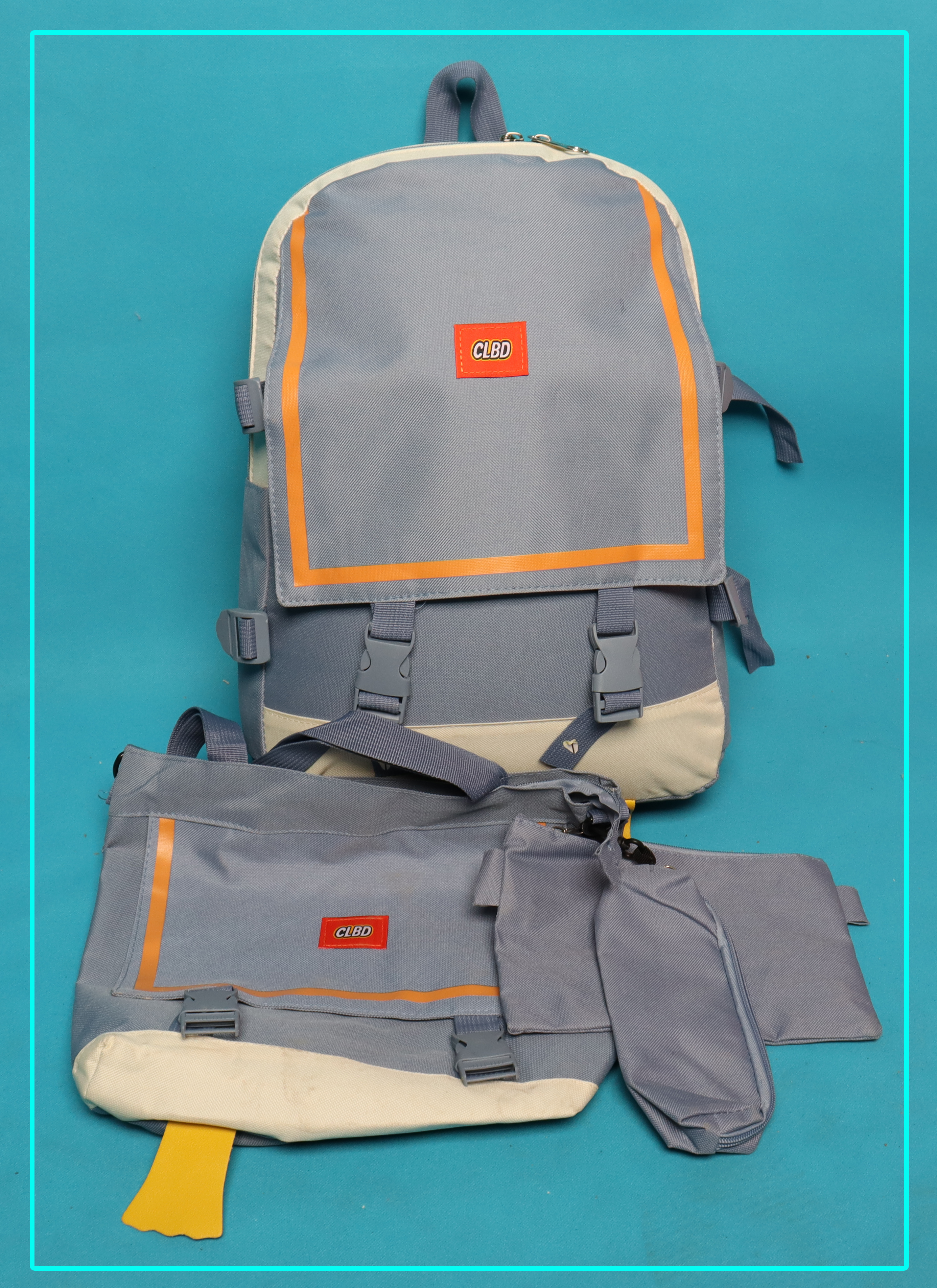 حقيبة مدرسية من CLBD، مصنوعة من القماش الملون العالي الجودة، تجمع بين الأناقة والعملية. تتميز بألوانها المحايدة مع لمسات من اللون البرتقالي الذي يضفي جاذبية على التصميم، وهي مثالية للطلاب الذين يرغبون في حقيبة عملية ومتينة.