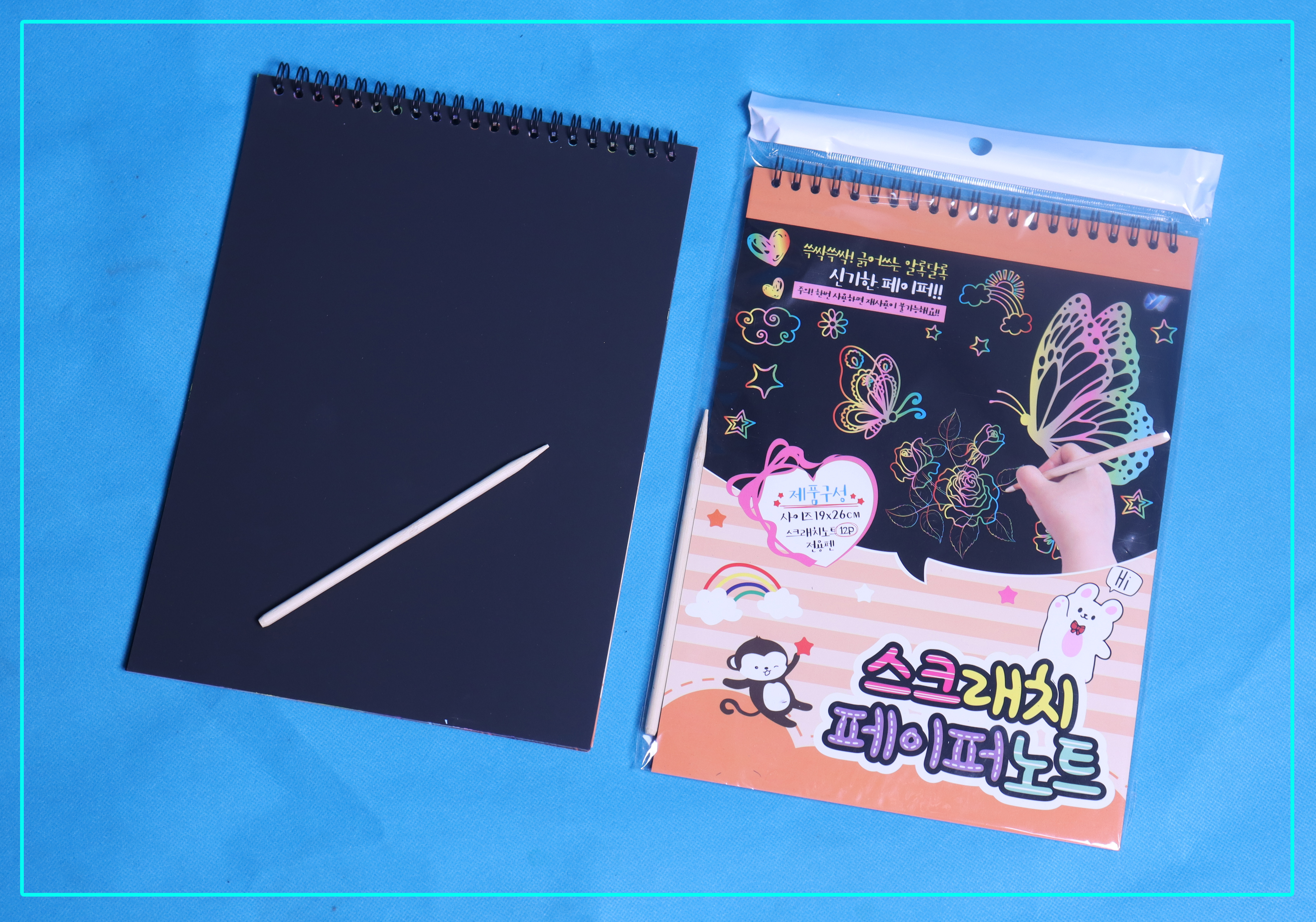 دفتر سيم اسود مع قلم خشبي كبير.